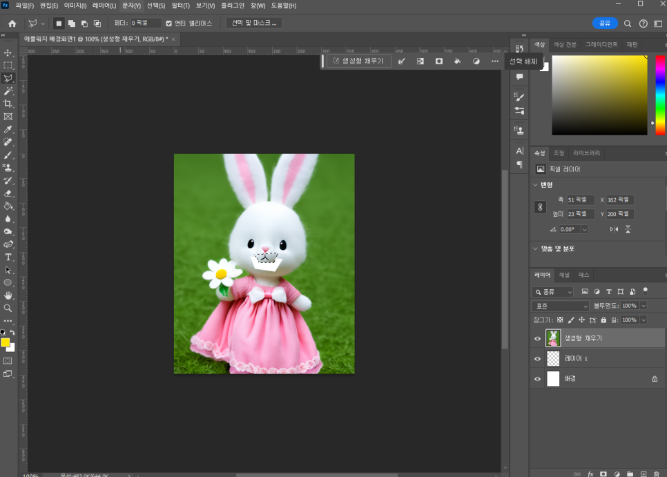 그 뒤 나머지 부분을 선택 후 생성형 채우기 기능으로 생성해 줬더니