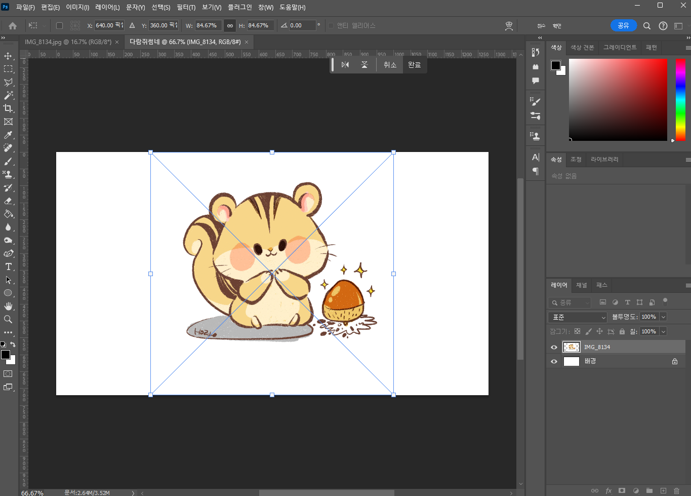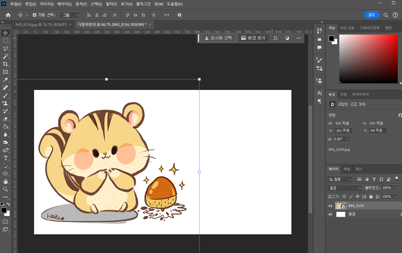 다람쥐 이미지 아래에 새 레이어를 하나 만든 뒤